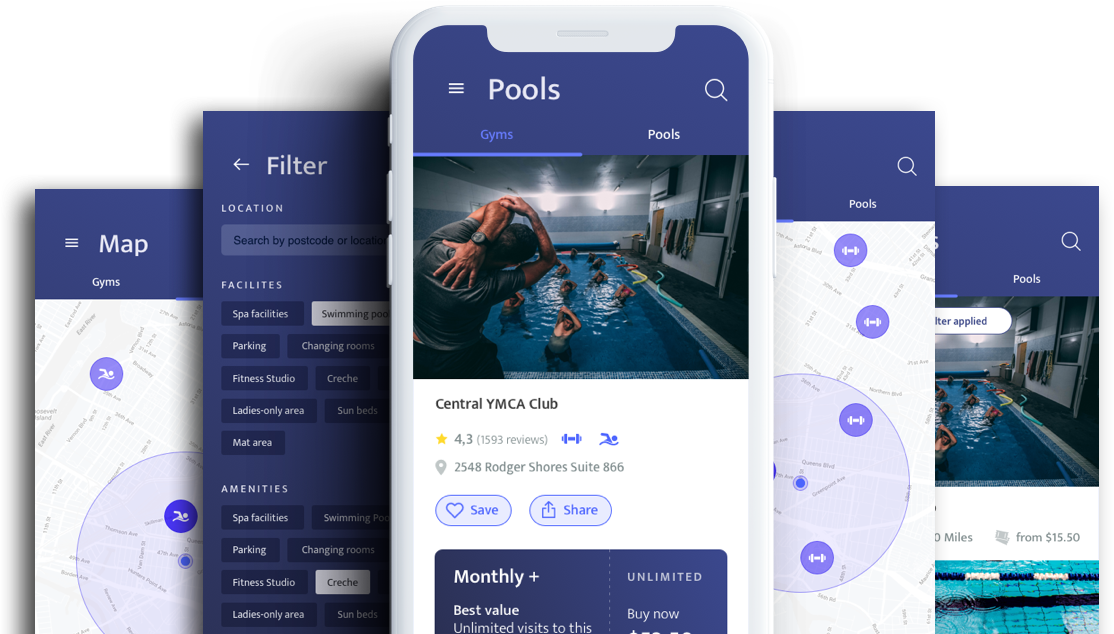 - Integration of geolocation map: displaying the nearest gyms, fitness studios, or sports pools on the map