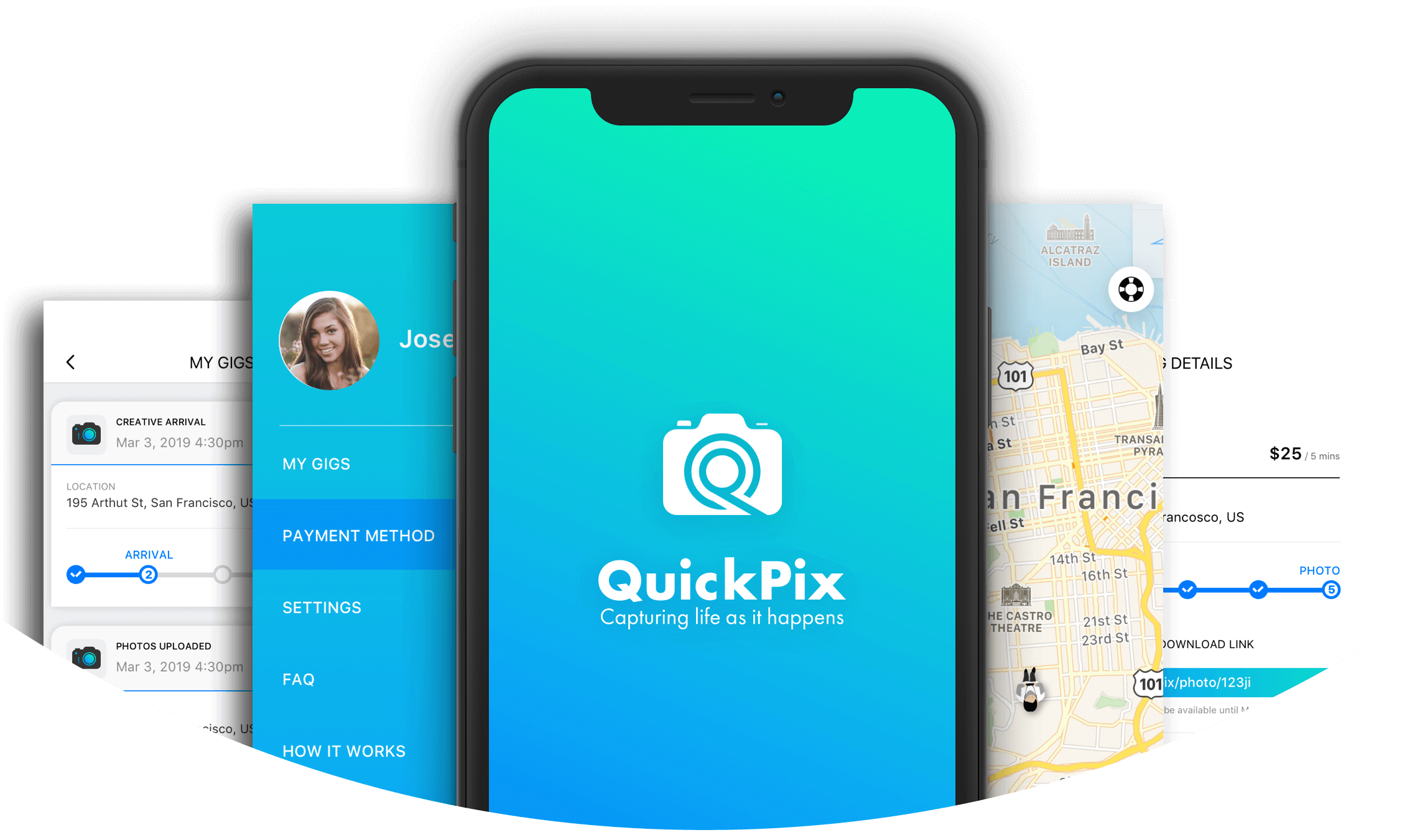 QuickPix is an Uber-like platform represented by two mobile apps that are specially designed to cater to the needs of both creatives and users. These applications are powerful tools for photographers to find a gig at any convenient time with no supervision, and for users to look for available creatives to take a pick of them at a required location. QuickPix is a convenient application for efficient on-demand photo services.