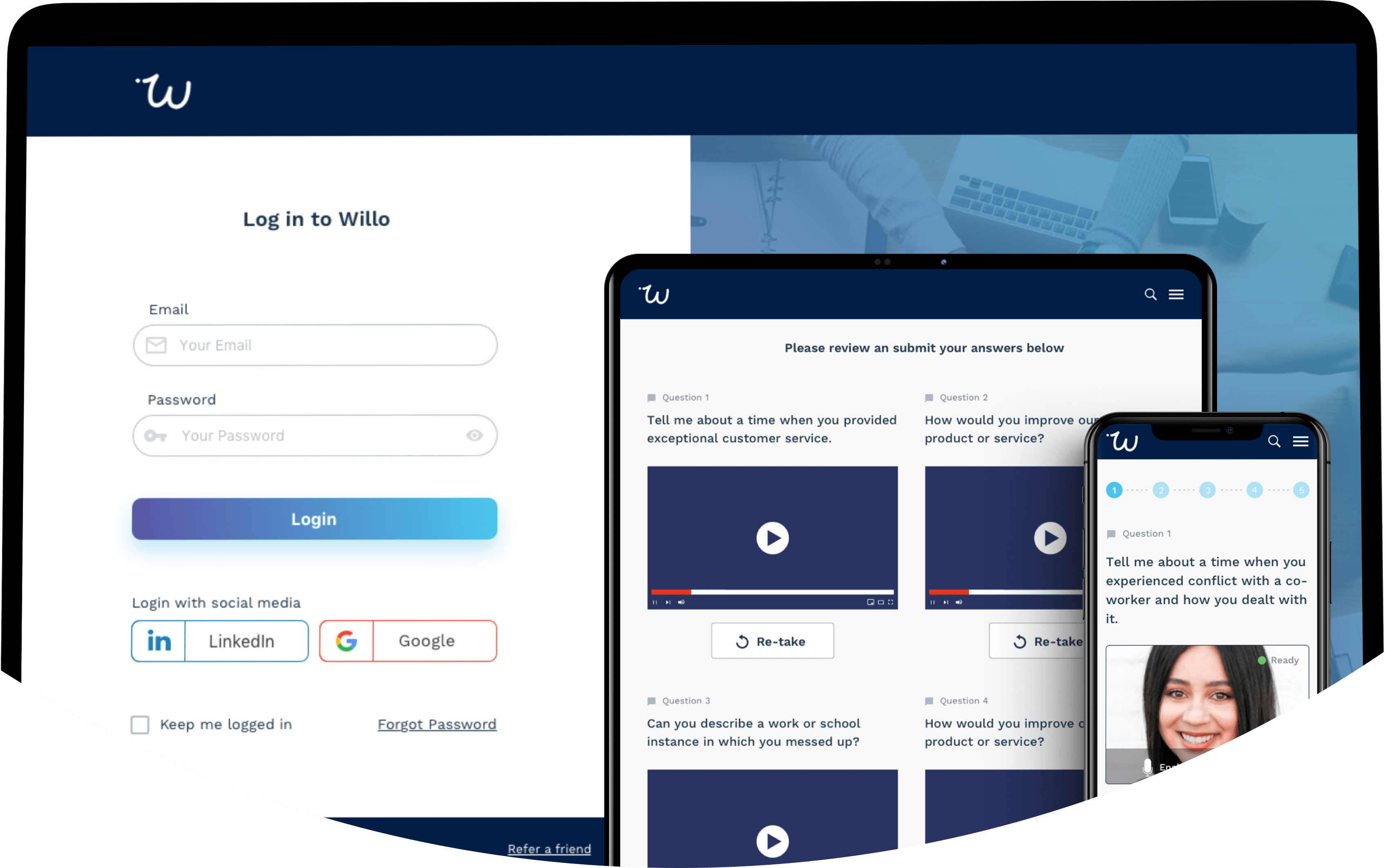 Willo allows companies to hire 40% faster with the remote video interviewing process. What distinguishes it from the other similar platforms is exceptional user experience and simplicity. A business can setup an interview on their desktop PC, tablet or mobile in less than 3 minutes. They can also customize the look and feel of their Willo portal, ensuring a consistent experience for candidates.