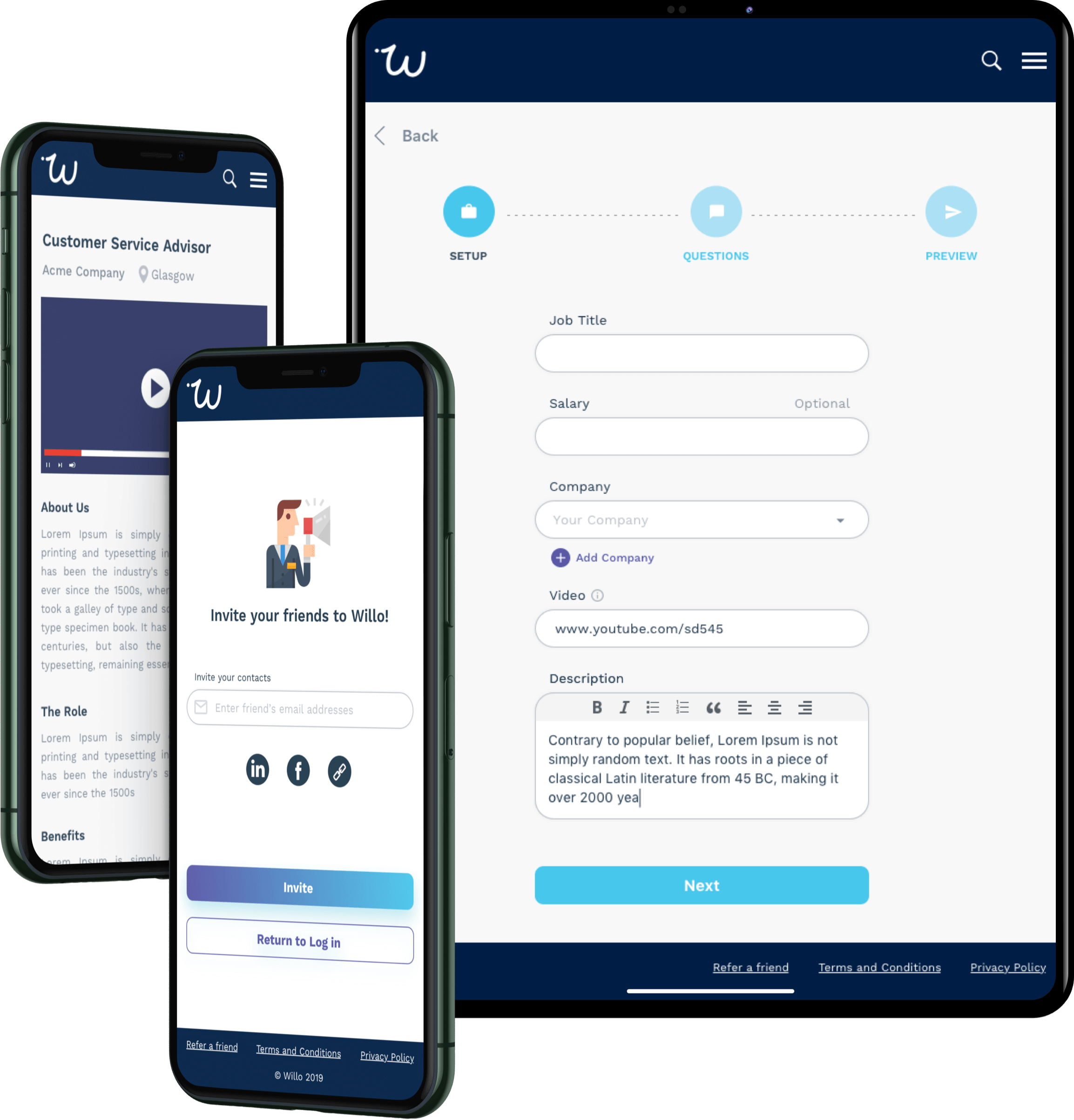 Willo is a web platform that aims to connect recruiters and applicants in a single ecosystem. The product is designed to help companies find the right talent 40% faster with the help of an optimized recruiting process.