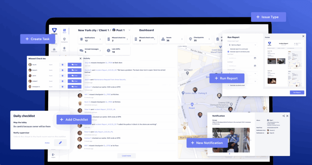LITSLINK built an interactive application Unisafe that allows the client’s security service to report on an employee’s daily activities. We came up with a breakdown of key features and a solution that includes a full-fledged UX/UI design for web and mobile apps, real-time tracking of guards, scheduling and GPS reporting, and QR code/NFC tag management.